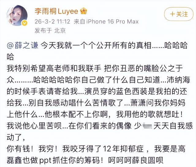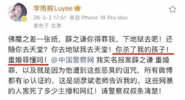 就在大家以为这场复仇大戏要草草收场时,李雨桐又反手一个实名举报薛之谦重婚,还爆料薛之谦偷手机、搞选妃操作。